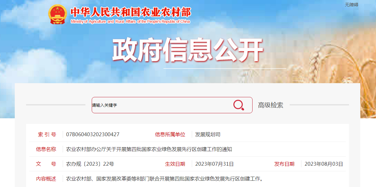 按照《農業農村部、財政部、國家發展改革委關于開展2023年農業現代化示范區創建工作的通知》(農規發〔2023〕15號)要求,農業農村部、財政部、國家發展改革委組......